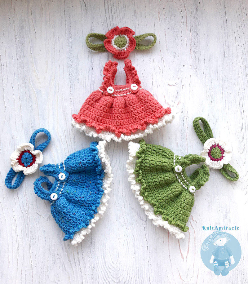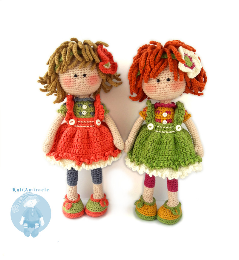The Pattern describes three color versions for crocheting dolls.